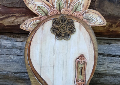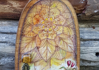 L’art et les êtres féériques de la nature me fascinent depuis l’enfance… Ainsi, l’idée de créer de petites portes en bois en guise de symbolique de connexion et d’ouverture sur ce « monde enchanté » est née de l’union de ces deux passions lors d’une méditation en plein air. Par conséquent, l’espace méditatif est donc intrinsèquement lié au processus créatif par des contacts intuitifs avec les êtres de la nature que sont les elfes, les fées et les gnomes. La magie des Portes Enchantées s’opère selon le regard qui est…