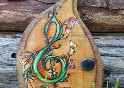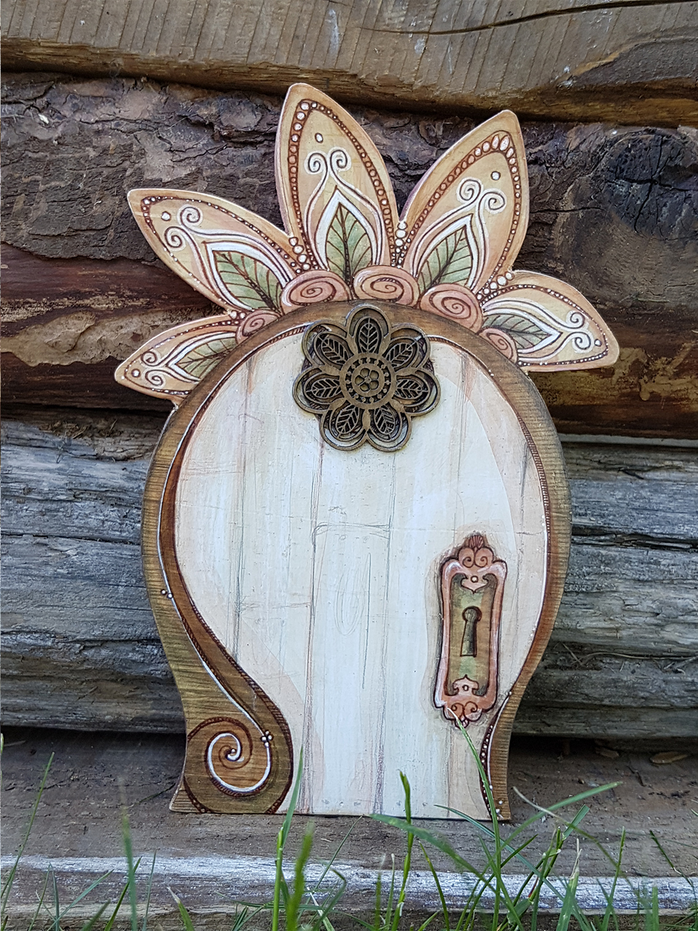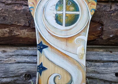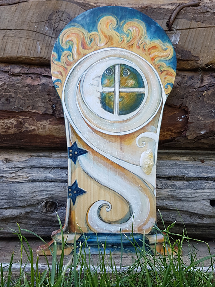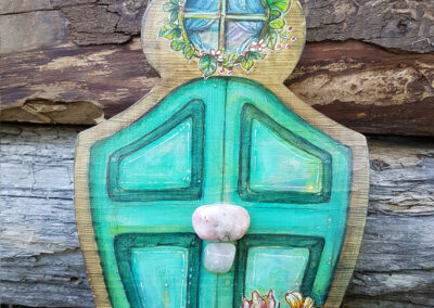 L’art et les êtres féériques de la nature me fascinent depuis l’enfance… Ainsi, l’idée de créer de petites portes en bois en guise de symbolique de connexion et d’ouverture sur ce « monde enchanté » est née de l’union de ces deux passions lors d’une méditation en plein air. Par conséquent, l’espace méditatif est donc intrinsèquement lié au processus créatif par des contacts intuitifs avec les êtres de la nature que sont les elfes, les fées et les gnomes.
