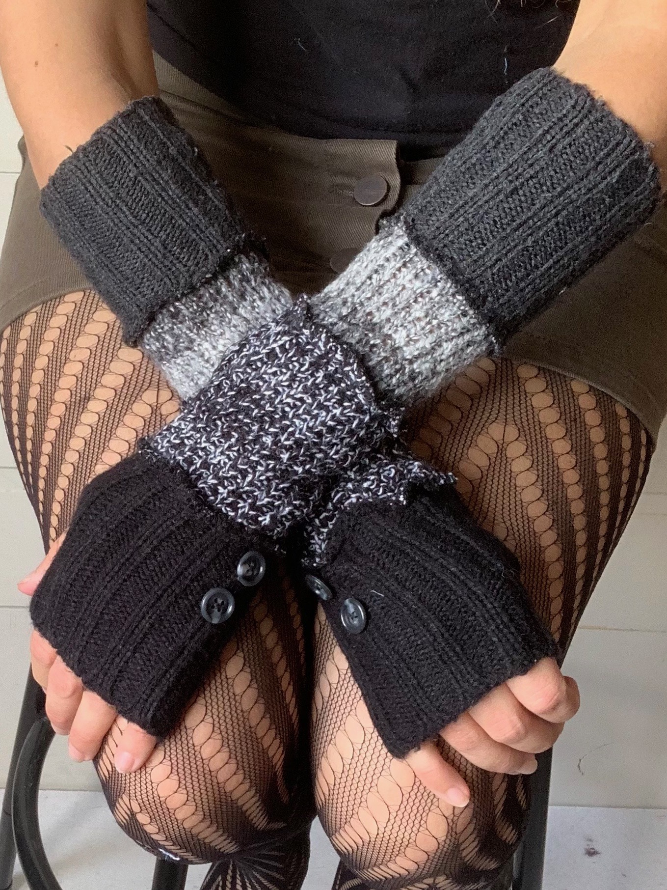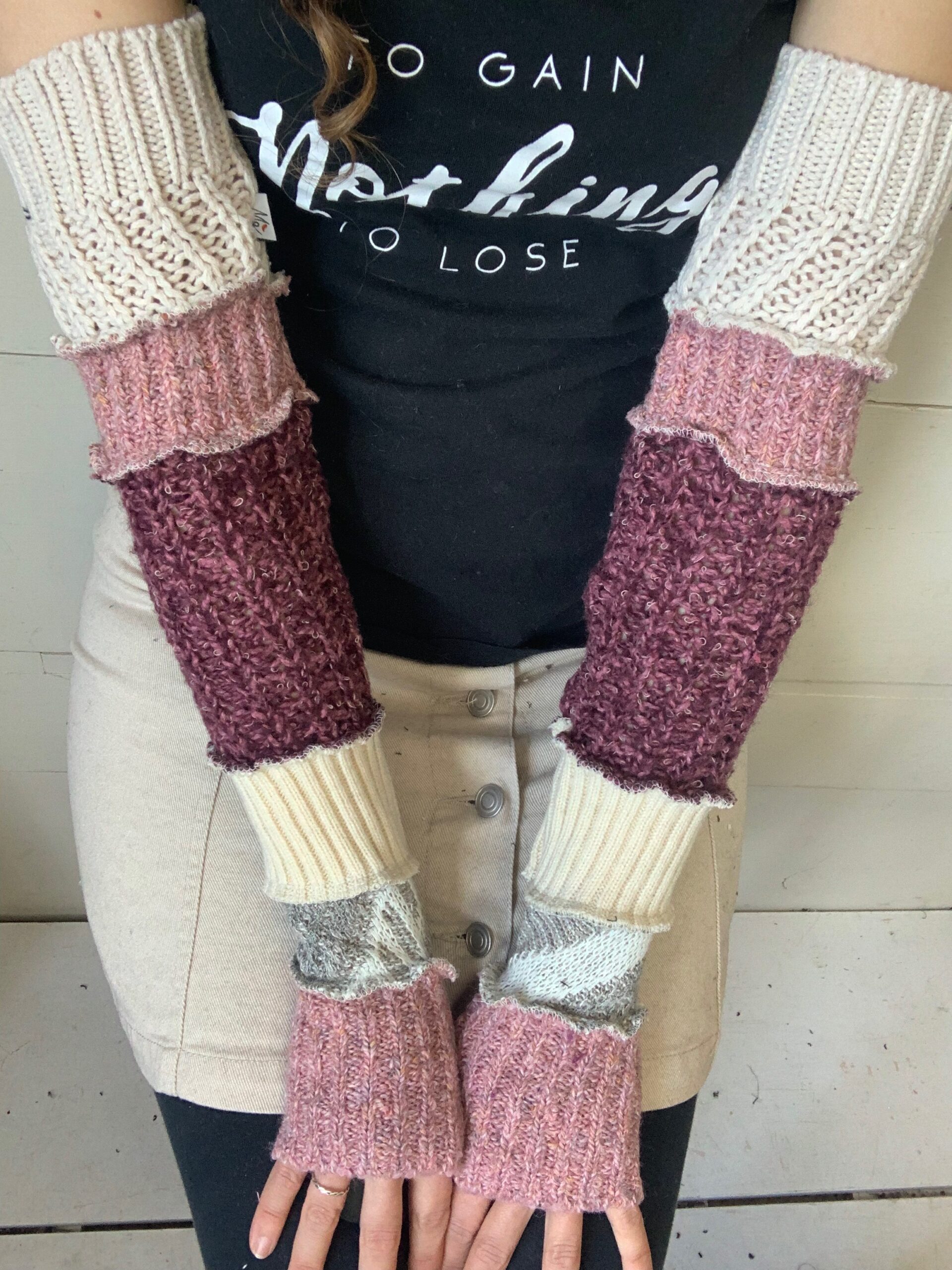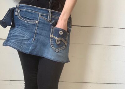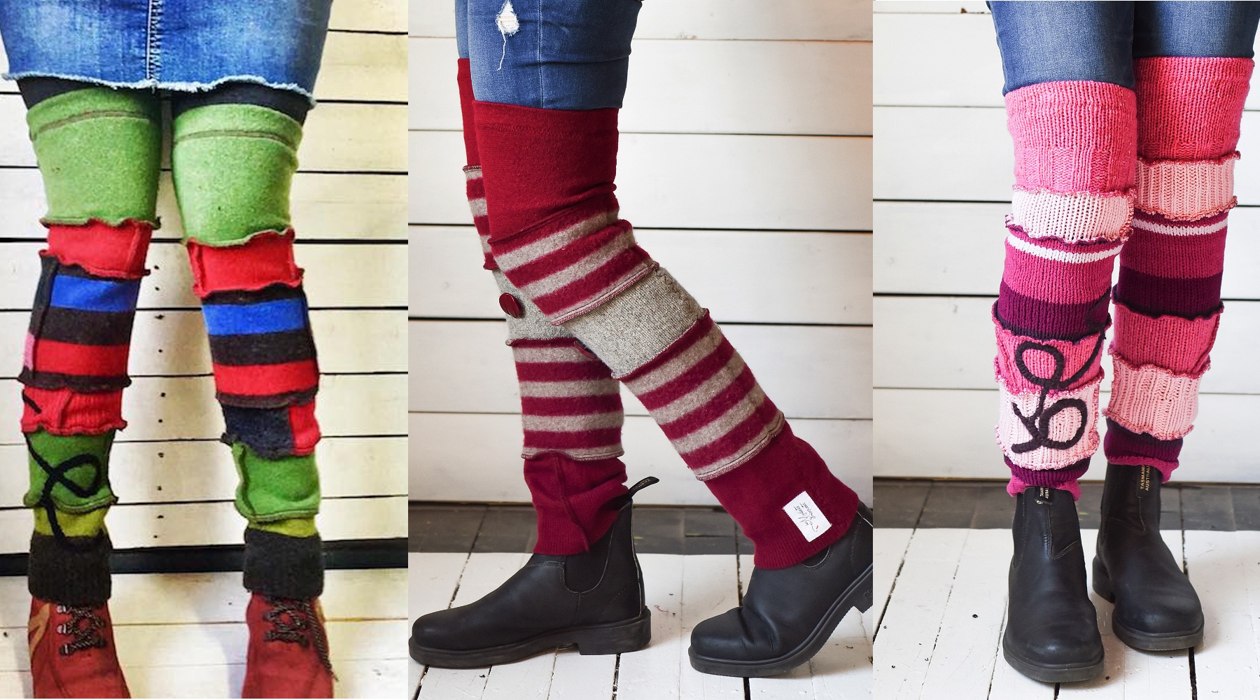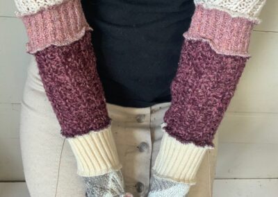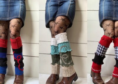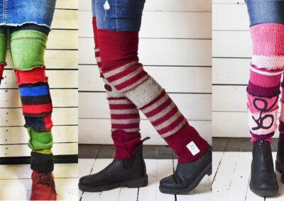 Recyclage de textiles... Depuis 2012, l’entreprise les Mollets Frisquets, a pour mission de créer des vêtements en recyclant au maximum différents textiles et de réduire ainsi les quantités de tissus jetés aux rebuts. Grâce à la confection de jambières, poignets et manches utilisant en totalité des fibres textiles usagées, Marie-Eve Roy valorise l’élégance responsable. Des touches décoratives uniques y sont ajoutées avec des retailles de coupe, des boutons et des bijoux récupérés. De cette façon, son travail reflète sa vision d’une consommation éco-responsable.