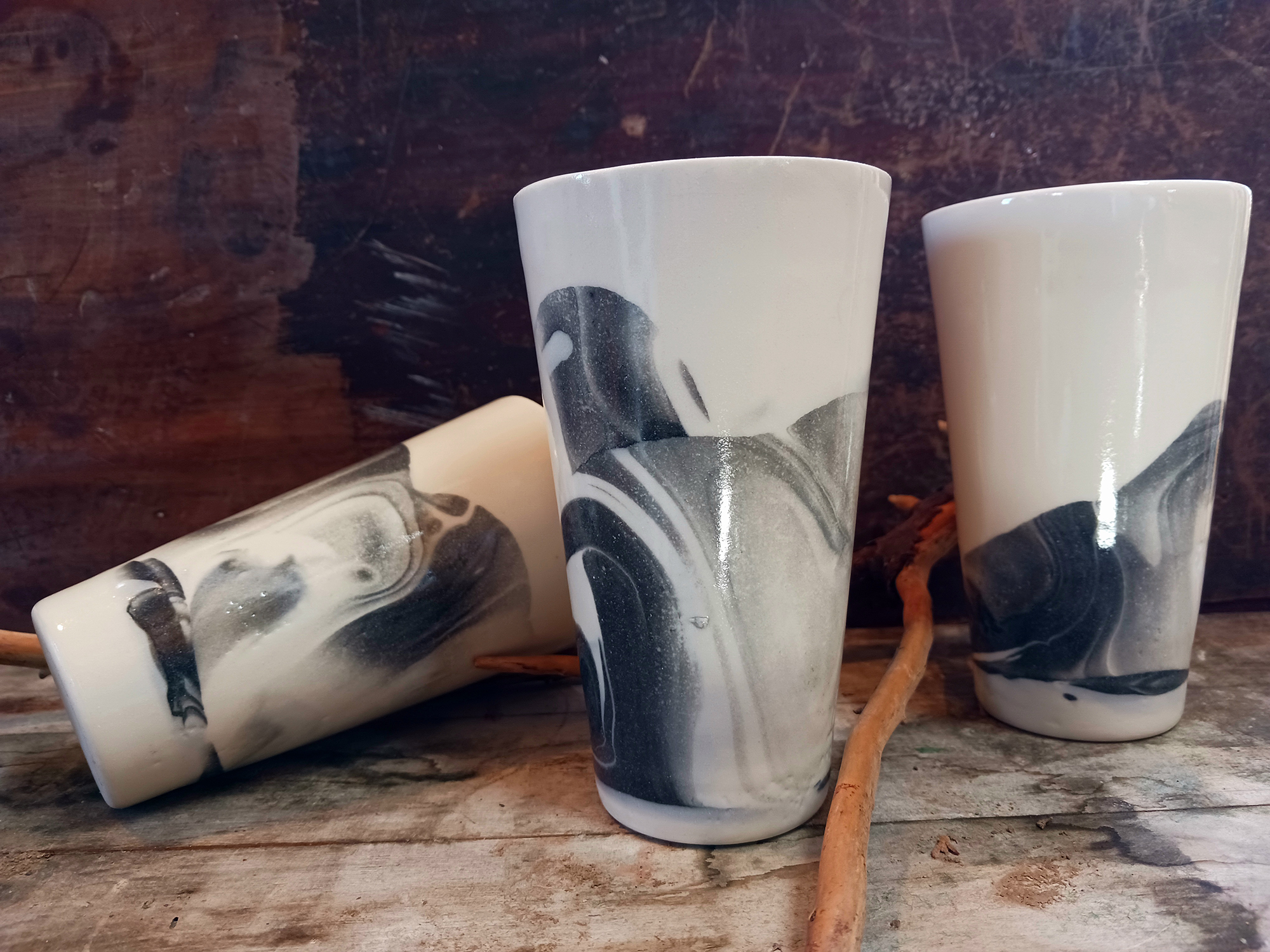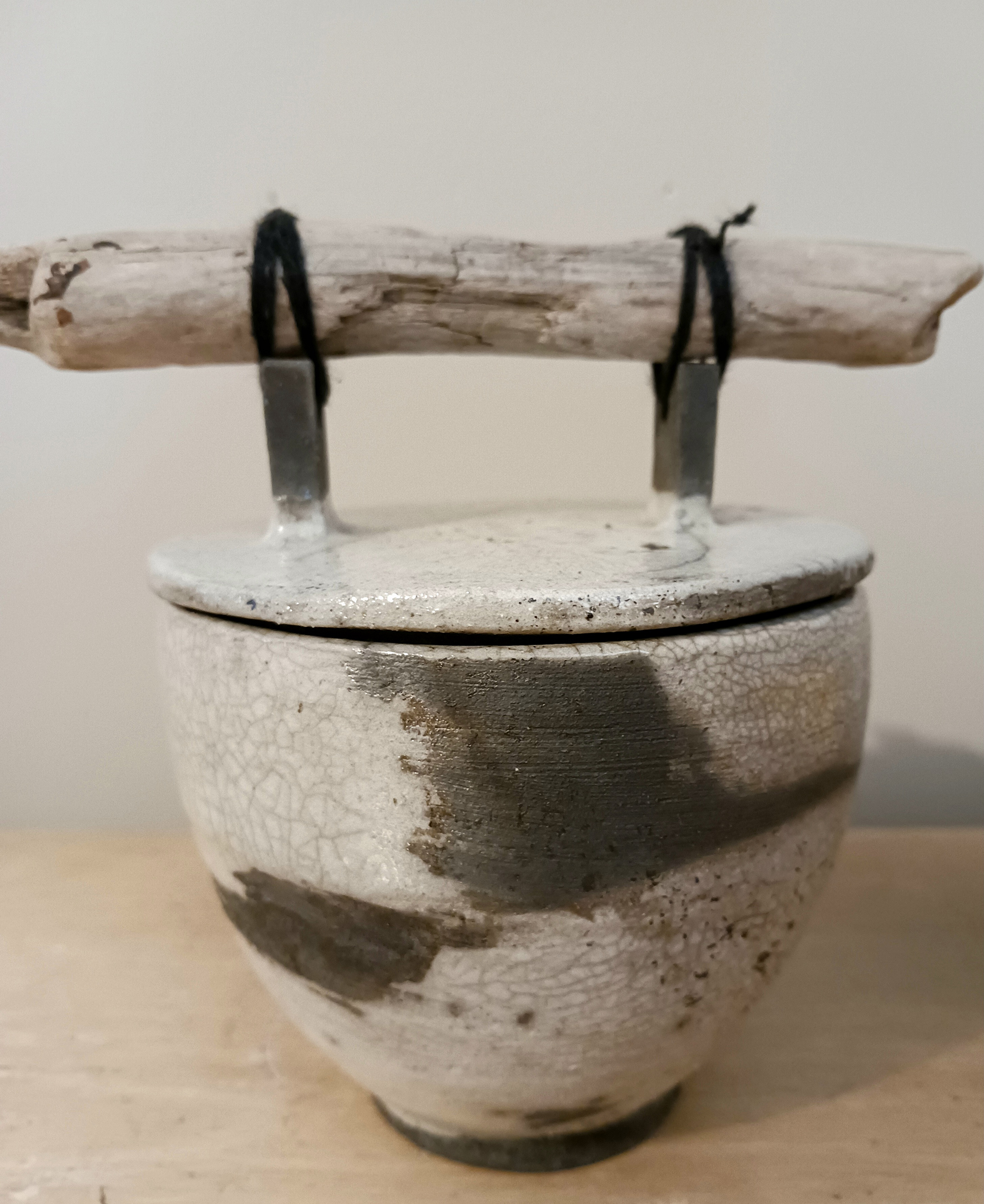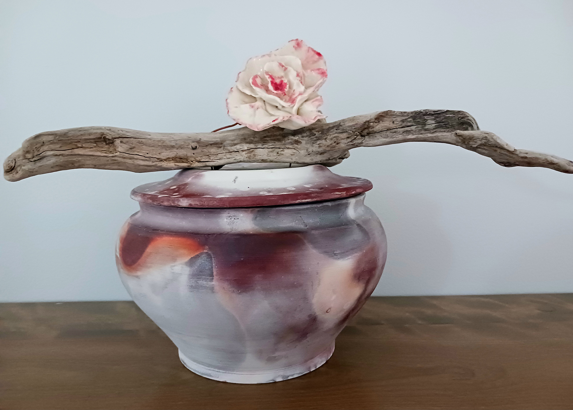 Mes créations sont inspirées par la nature et l’observation du fleuve. L’ajout de bois flotté glané sur les grèves du Kamouraska confère un aspect naturel ou sculptural à mes créations uniques. Le raku et l’enfumage sont les techniques céramiques que je privilégie. Je réalise aussi de petites séries d’objets utilitaires tels; assiettes, bols, gobelets, tasses… où la matité de la terre et la brillance de la glaçure offrent des jeux de textures.