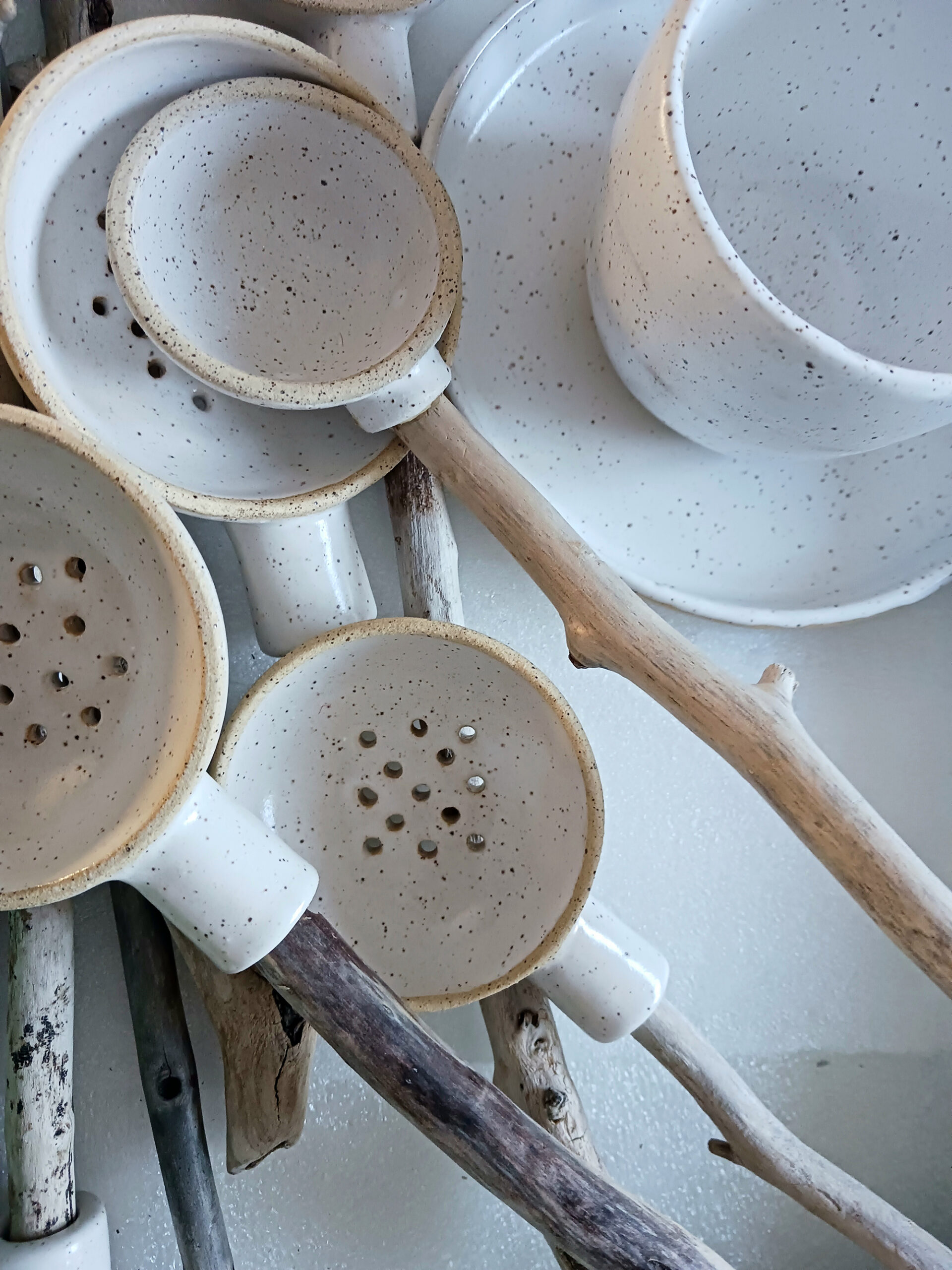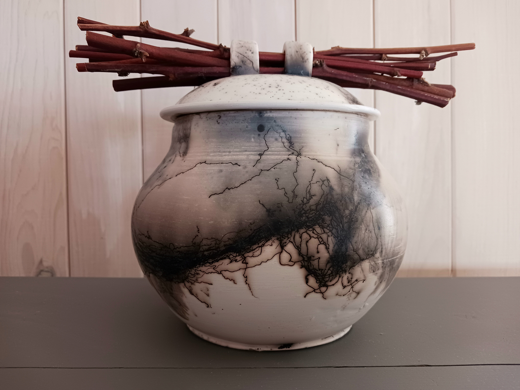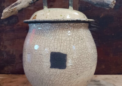 Mes créations sont inspirées par la nature et l’observation du fleuve. L’ajout de bois flotté glané sur les grèves du Kamouraska confère un aspect naturel ou sculptural à mes créations uniques. Le raku et l’enfumage sont les techniques céramiques que je privilégie. Je réalise aussi de petites séries d’objets utilitaires tels; assiettes, bols, gobelets, tasses… où la matité de la terre et la brillance de la glaçure offrent des jeux de textures. L’art, c’est le bonheur de jouer avec des matières, des formes, des couleurs. C’est de s’exprimer en objets,…